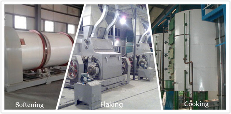The peanut kernel is soft, normally it does not need to be softened. Sometimes it can be flaked directly only after the suitable heat treatment. Generally, cooking is adjusted according to the conditions required for hot pressing. When the moisture content is close to 1-2% and the temperature reaches 120-130℃, it is time to finish cooking and begin to press.